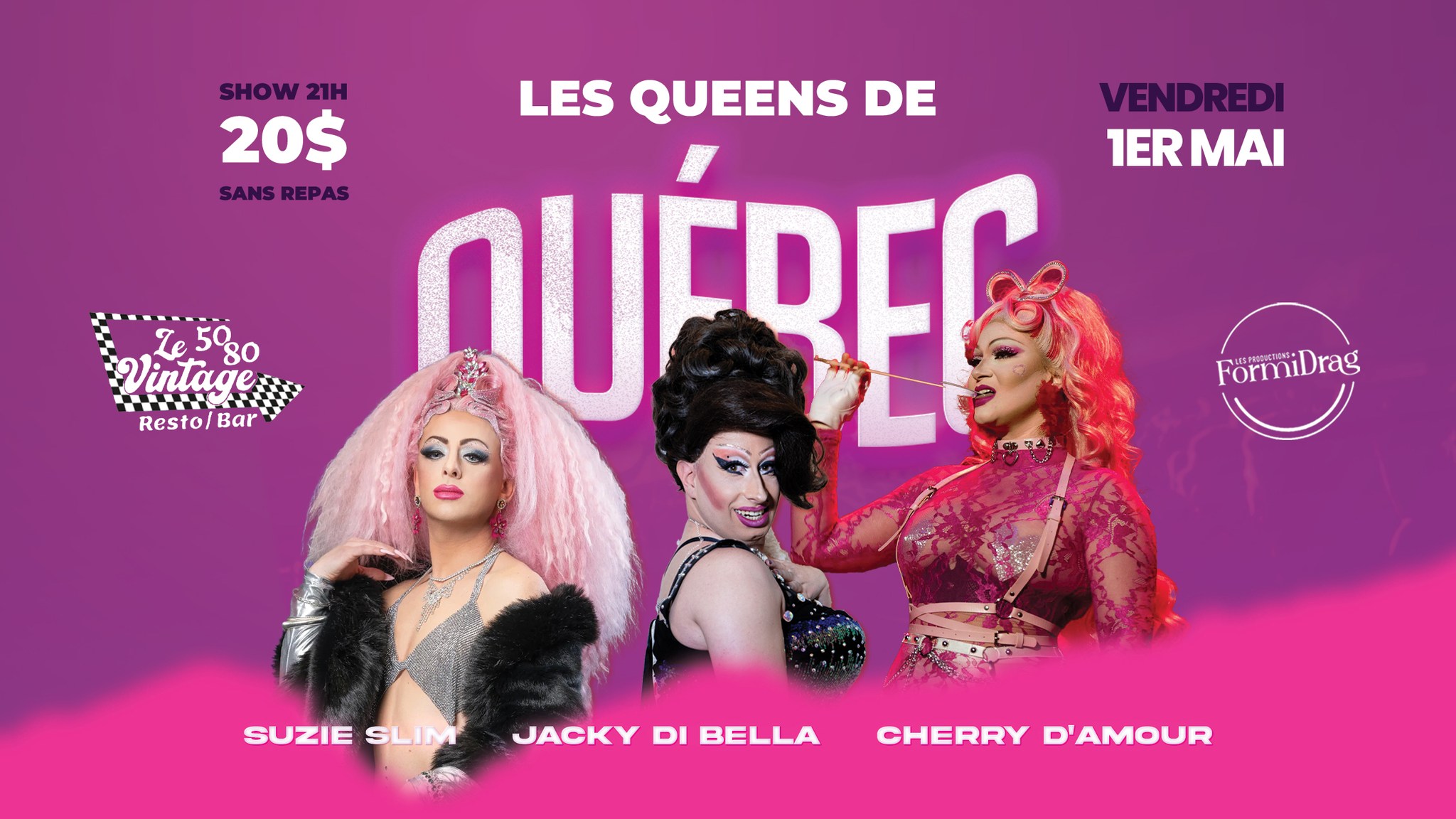 Les 5 à 7 Jeunesse d’Aujourd’hui; de 17H30 à 19H30 : 2 verres de vin rouge ou blanc pour 18$, 2 Shirley Temple pour 9$, 2 Cosmopolite pour 15$